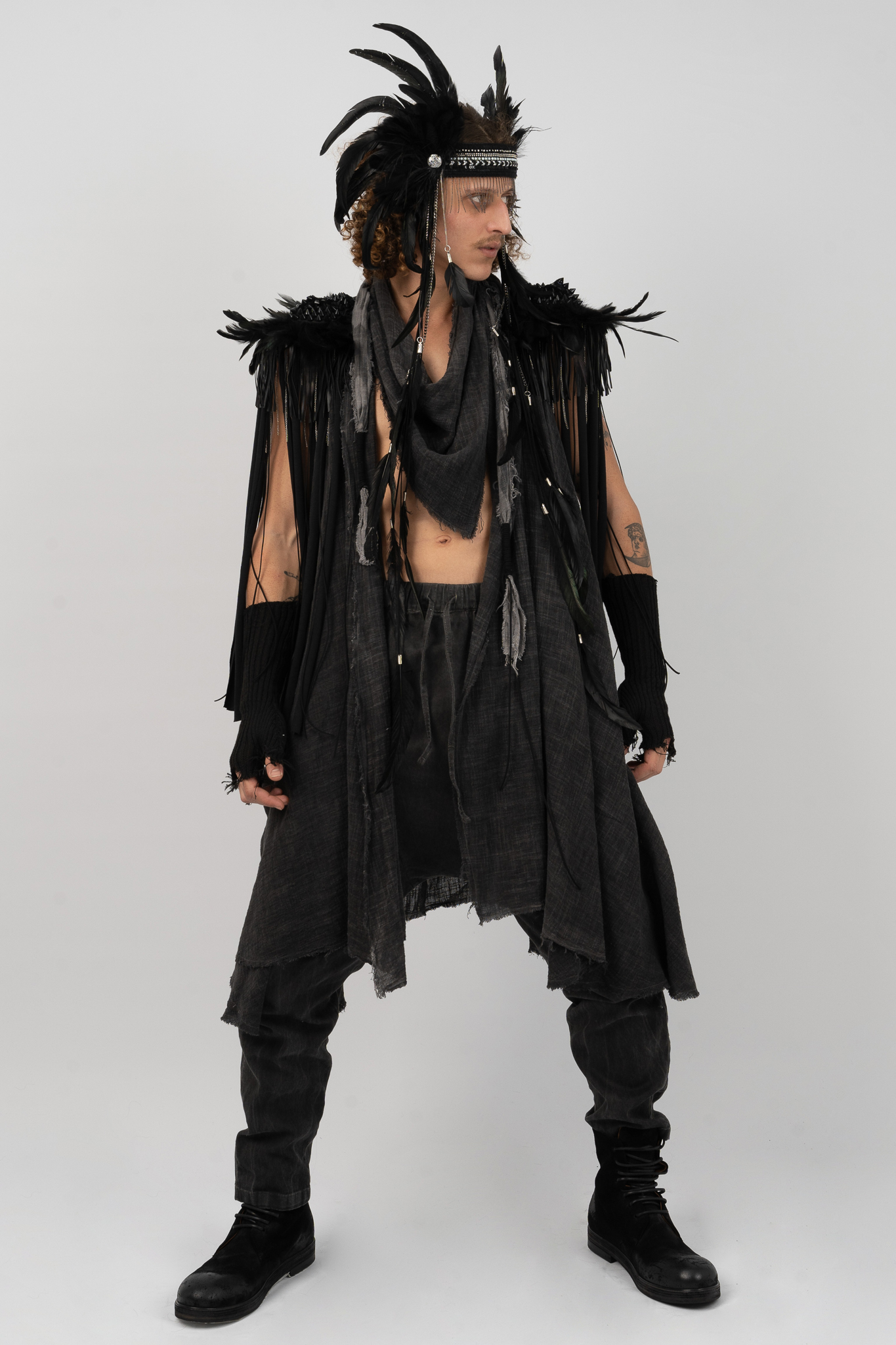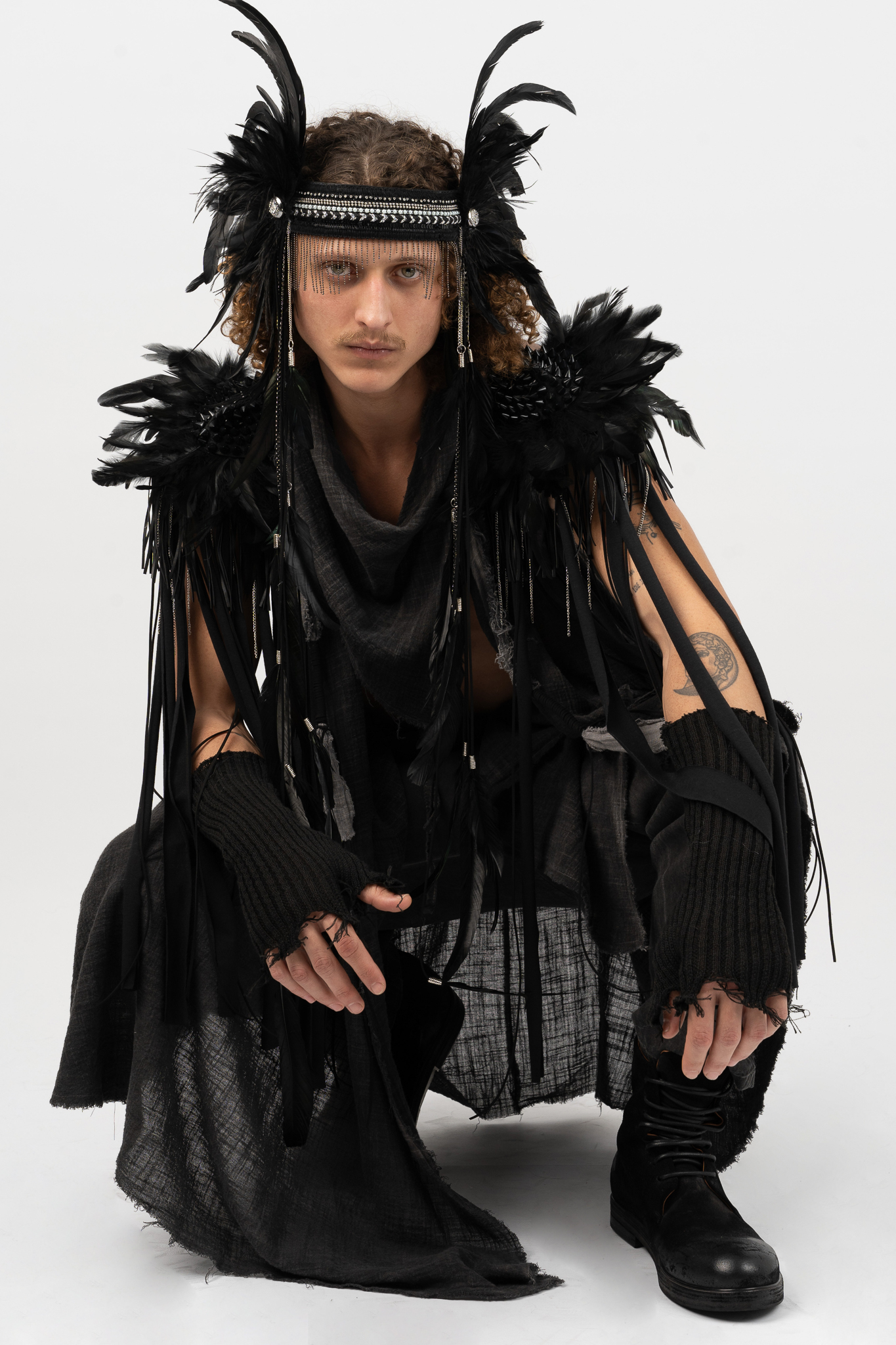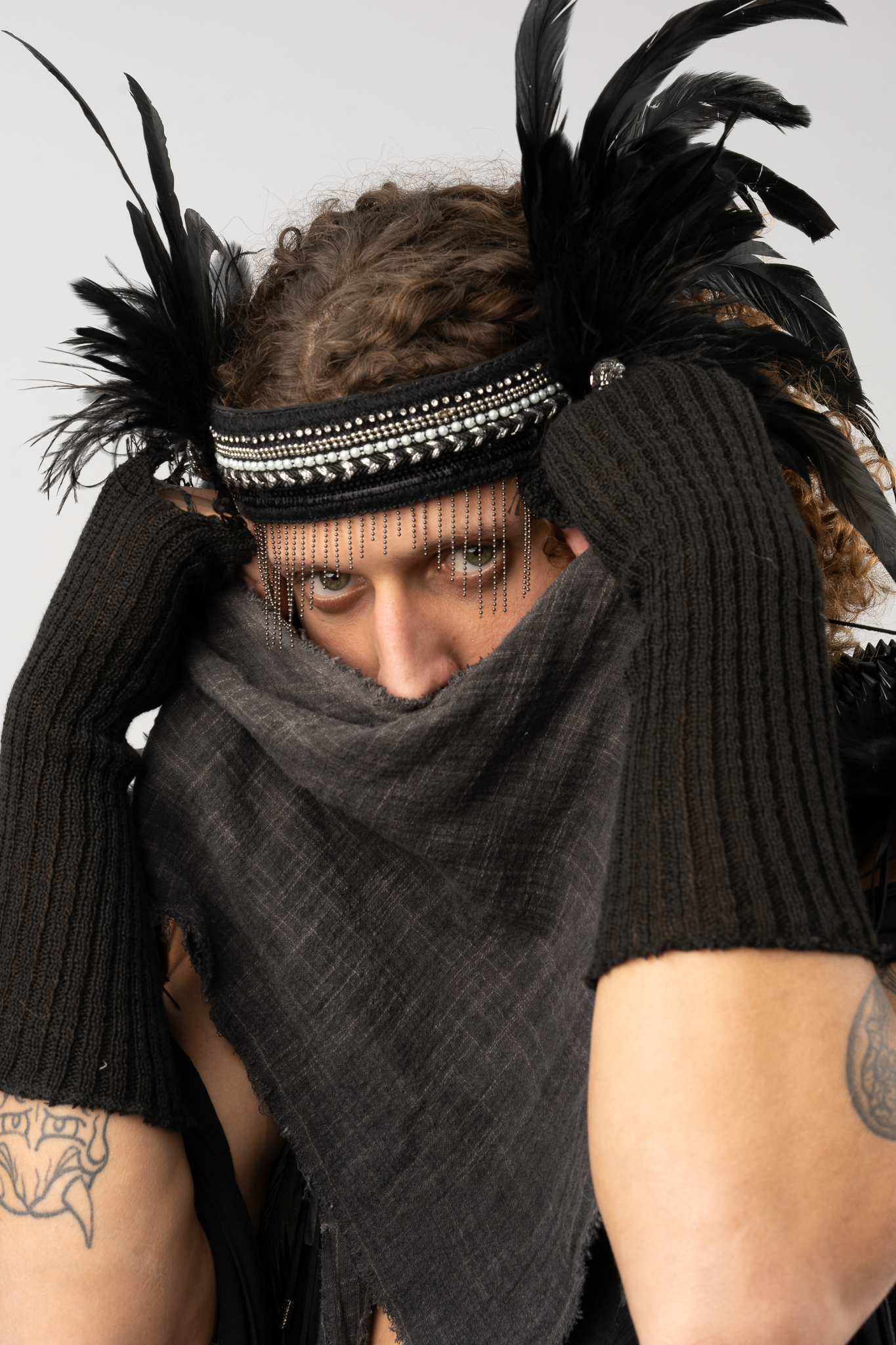 Handmade Indani crown decorated with ethnic ornament ribbon and feathers.